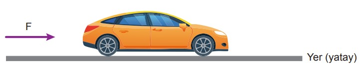 Görseldeki araba, başlangıçta dengelenmiş kuvvetlerin etkisinde hareket etmektedir. Bu arabaya F kuvveti uygulanacaktır.