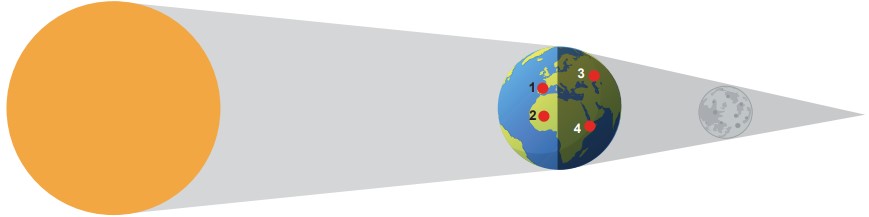 Tutulmaya ait görsel aşağıda verilmiştir. Bu görselde Dünya üzerindeki bazı bölgeler numaralandırılmıştır.