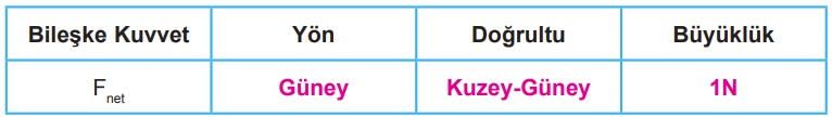 Buna göre M cismine etki eden bileşke kuvvetin özelliklerini aşağıda verilen tablodaki ilgili yerlere yazınız. (Bölmelendirilmiş alanda her bir bölme 1 N'dır.)